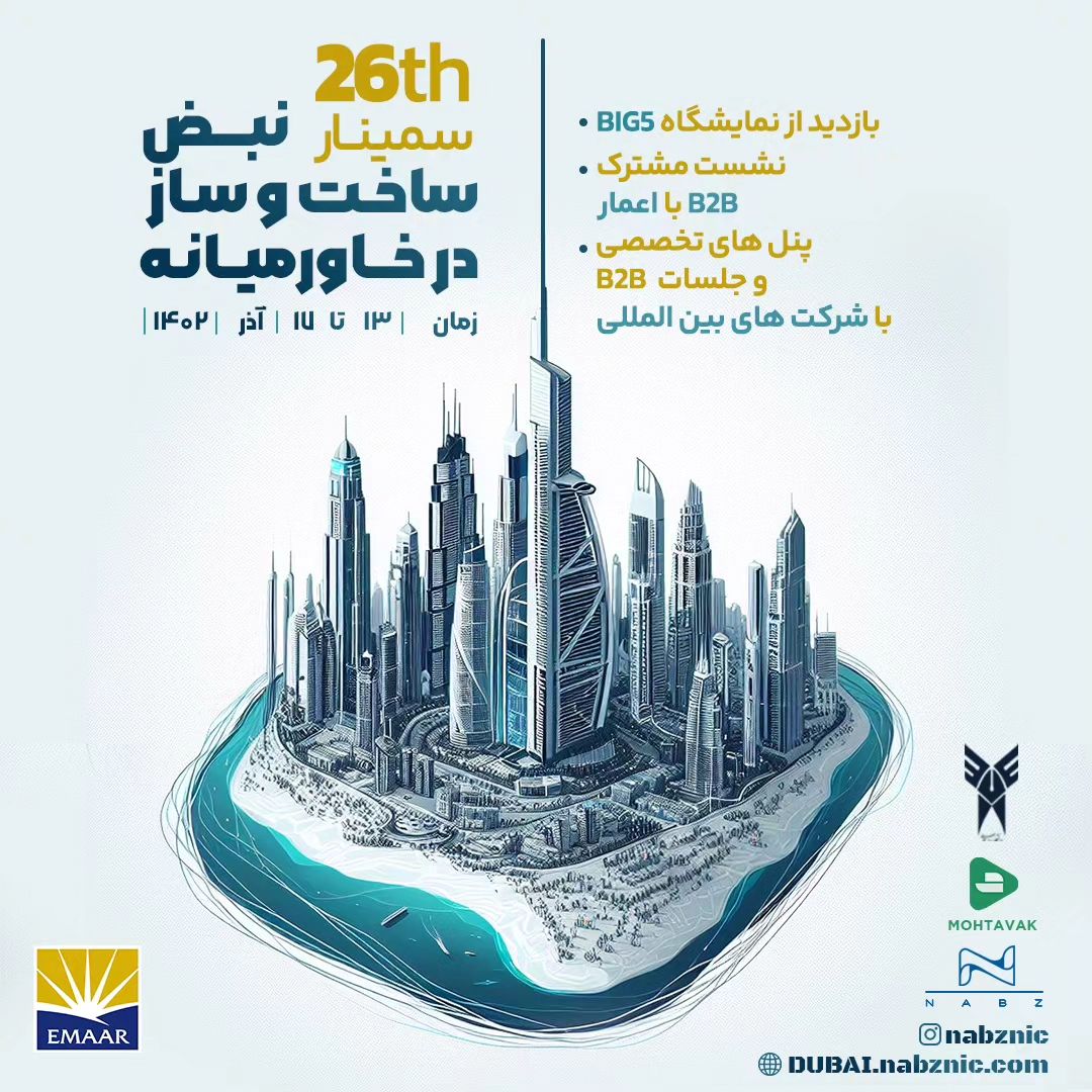 موسسه محتواک با همکاری دانشگاه آزاد واحد امارات با اسپانسری شرکت اعمار همزمان با نمایشگاه بینالمللی Big5 ، سمینار تخصصی نبض مهندسی را با عنوان «نبض ساخت و ساز در خاورمیانه» در آذرماه 1402 (6 دسامبر 2023) در دبی برگزار خواهد کرد. این سمینار با هدف بهرهبرداری ویژه از فرصت حضور فعالان صنعت ساختمان در نمایشگاه Big5 ، شبکهسازی و گسترش ارتباطات با شرکت های بین المللی، تبادل تجربیات و نوآوریهای بخش صنعت ساختمان، بررسی شرایط صدور خدمات فنی مهندسی و همکاری و سرمایه گذاری در پروژه های مشترک برگزار خواهد شد. همچنین در این سمینار که با حضور شرکت های ساختمانی اماراتی برگزار خواهد شد، شرکت های مهندس مشاور مطرح دنیا نیز ارائه خواهند داشت.طبق مذاکرات و توافق های حاصل شده درخصوص استفاده از محصولات ساختمانی ایرانی در پروژه های دبی، سرمایه گذاری در پروژه های ساختمانی ایران و سرمایه گذاری و ساخت در دبی، بسترهای لازم فراهم شده و شرکت ها میتوانند جهت بهره برداری از این فرصت ها اقدام نمایند.